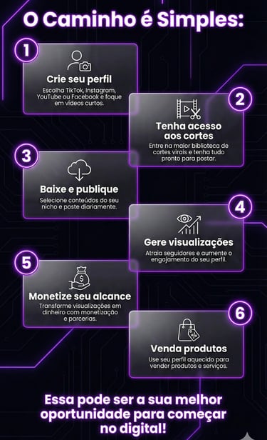 Sem aparecer, transforme seu conteúdo em uma renda extra ou até mesmo principal, é só usar bem o nosso contéudo de Cortes Virais, há uma infinidade de nichos que estão em alta, basta escolher e aplicar.